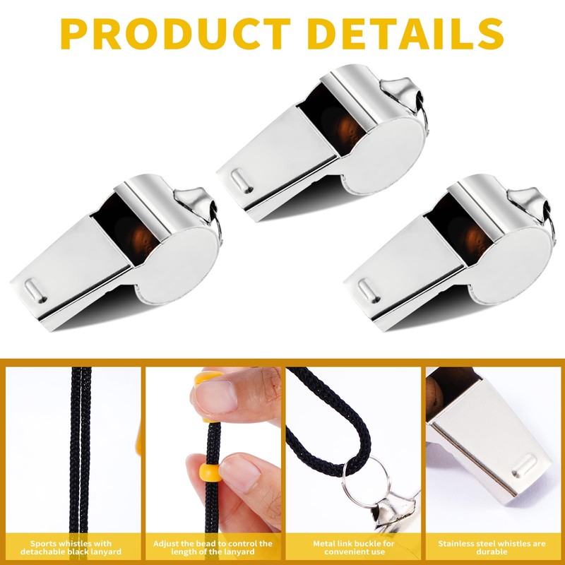 - What you get: the package contains 3 pieces stainless steel metal whistle with lanyards. If you have any questions, please feel free to contact us, we will reply you within 12 hours.