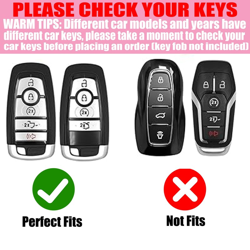 - Fits Key Model: The key fob cover is compatible with Ford Explorer Fusion Escape Edge Expedition F150 F250 F350 F450 F550 Maverick Mustang 3/4/5 buttons smart key. The model is only for reference, please DOUBLE CHECK your key shape and button labels carefully to make sure it is the same as the second picture.(NOTE: same brand car may have different car key model.)