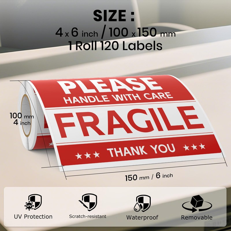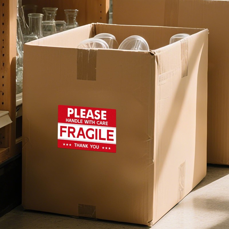 Protect your fragile goods with YIKIADA professional grade labels. These 6x4-inch vinyl stickers with bold red “Fragile” and “Handle with Care” letters instantly alert handlers that our vinyl adhesive removes cleanly - no sticky marks on boxes or floors, and the vinyl is durable. All-weather durability that resists rain, moisture and friction during long-distance transportation.