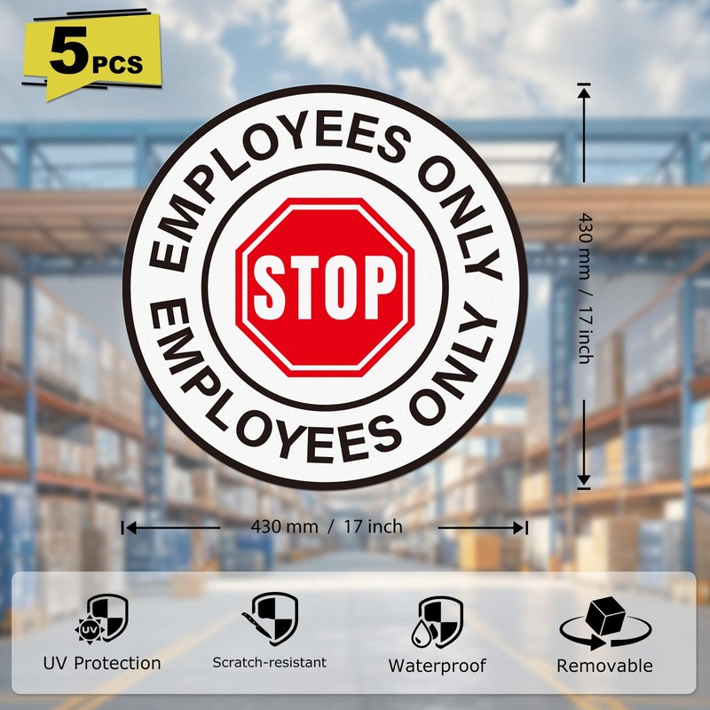 YIKIADA 5 Pack Stop Employees Only Sign 17 × 17 Inches Caution Warning Safety Sticker Self Adhesive Vinyl Waterproof Decal for Workplace Business Office