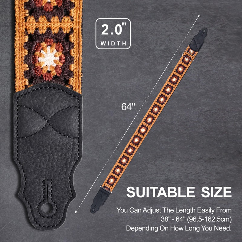 - 【Original Design】-YIKOKO guitar strap has a beautiful appearance, elongated head-layer cowhide end with unique shape. Knitted with soft wool but very strong, there are a variety of brightly colored floral patterns to choose from to meet different personalized needs.