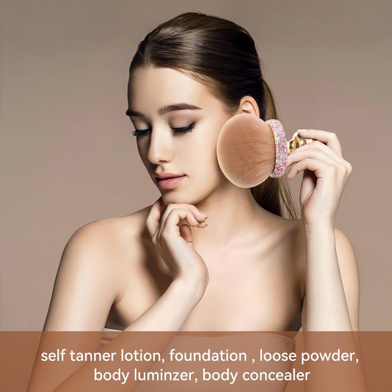 - EXTRA LARGE KABUKI BRUSH: Oversized, 3inch oval-shaped brush head allows for efficient coverage, quickly achieves a perfect, poreless, and beautiful makeup finish. Perfect brush for leg, arm, collarbone, cheek makeup and back tanning applicator