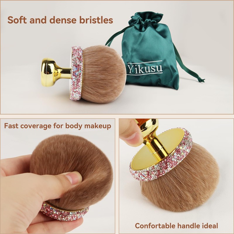 Yikusu Extra Large Body Makeup Brush for Self Tanner, 3 Inch Width Self Tanning Kabuki Brush, Powder, Foundation, Blusher, Bronzer, Oval Face Leg Makeup Brush with Drawstring Bag&box (Diamond)