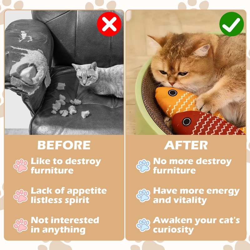 - Premium Plush and Natural Materials: This set includes three fish catnip toys made from premium plush material and cotton, filled with natural catnip. The plush surface is soft and hand-sewn for durability, ensuring a safe and long-lasting playtime experience for your feline friend.