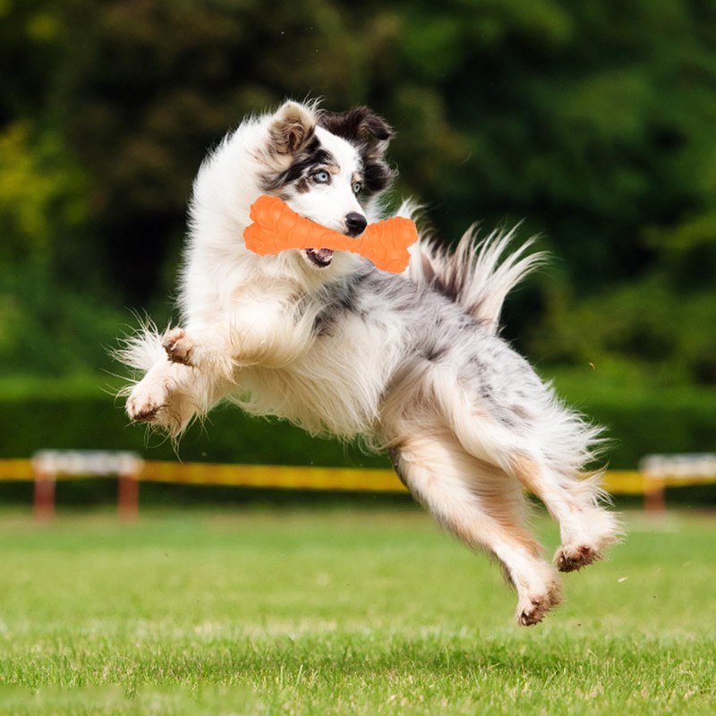 - Entwickelt für harte Kauer: Dieser Kauknochen aus Gummi ist für starke Kauer aller Größen geeignet und hält selbst den hartnäckigsten Kauversuchen stand. Er ist so konstruiert, dass er auch dem ausdauerndsten Spiel standhält und ein zuverlässiges Kauspielzeug für Ihren Hund darstellt