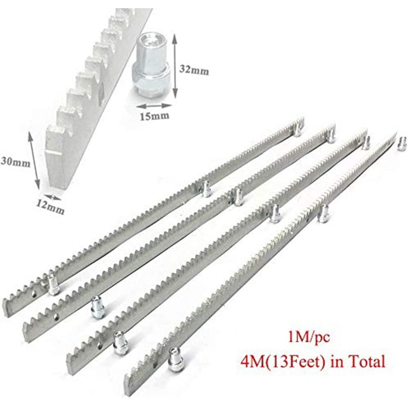 YILIKISS 4pcs Heavy Duty Steel Gear Rack Sliding Gate Opener Teeth Track Gate 0perator Total 13Ft/4M for Slide Door Operators Sliding Gate Openers, 12mm Thickness