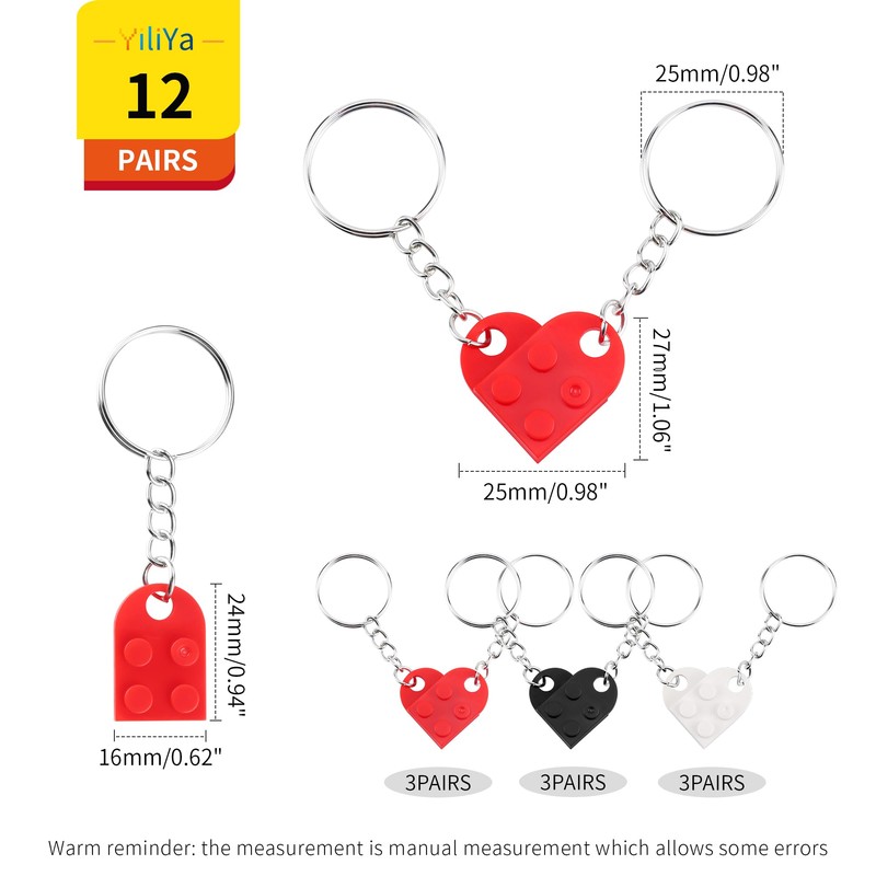 - Heart keychain: 12 pairs of heart key rings included, red, white, black, 3 pairs of each colour. Enough quantity for your use and to share with friends!
