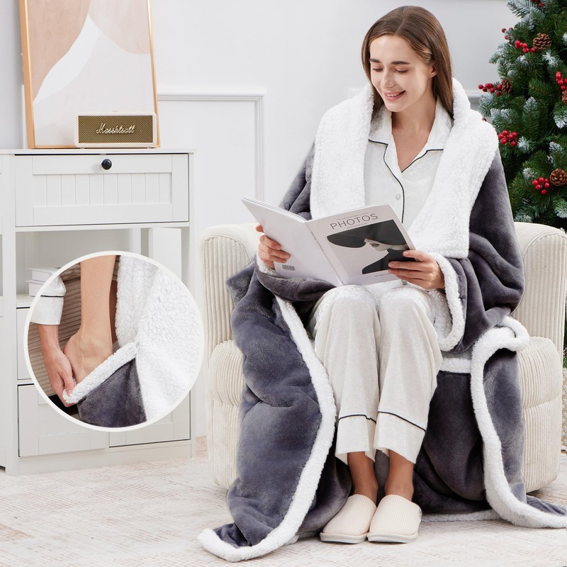 YILOTE Electric Blanket Wearable Throw - Robe with Sleeves and Foot Pockets - 7-Level Heating Auto-Off Blanket for Adults