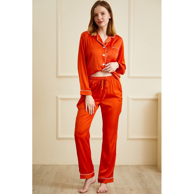 - [Material] Made from a luxurious silk satin fabric, this silk pajamas for women are soft and comfortable. Double stitching design makes these womens pajama sets not easy to tear.