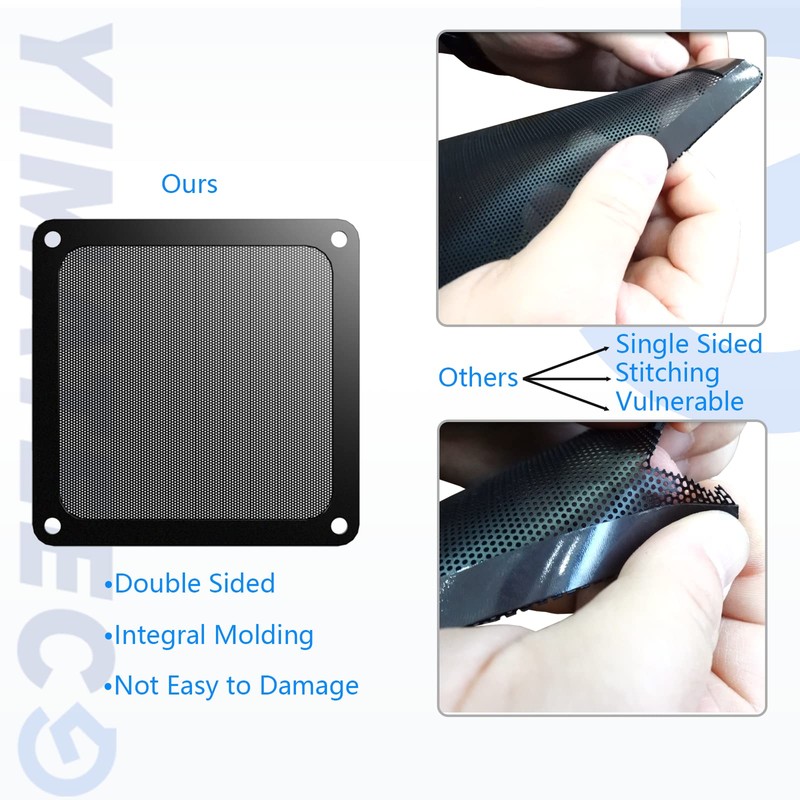 - 💡【NEW DESIGN】Different from the traditional single-sided design, Use Double-Sided frame, High content PVC material, No deformation at high temperature, fire retardant. PC Case Fan Dust Filter with Single Magnetic , without any tools or screws, Easy to install and disassemble.