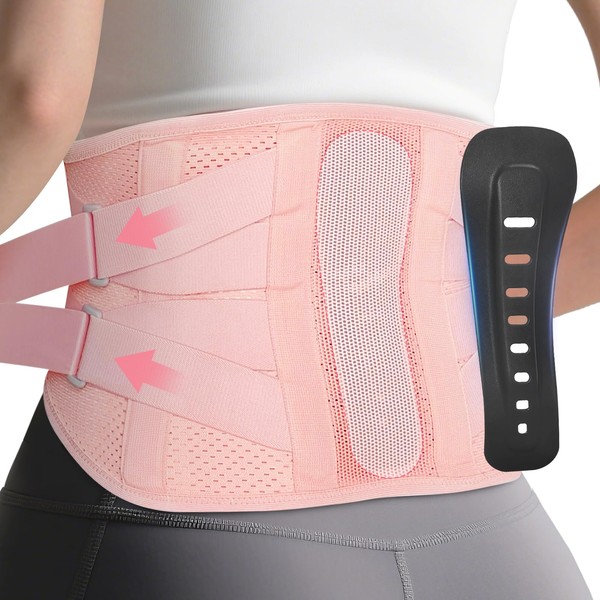 YIMED Back Brace for Lower Back Pain Women with Bionic Support System, Lumbar Support Belt for Men & Women, Breathable Mesh Design Back Support Brace for Herniated Disc, Sciatica, Scoliosis - Pink, M