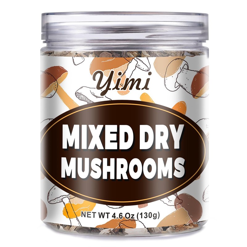 Yimi Dried Mixed Mushrooms, 3 Kinds Mushroom for Cooking - Frozon Woodear Mushroom, Shiitake, Champignon Blend, Soft Texture Bold Flavor Vegan Food, Father's Day Gift, 4.6 oz