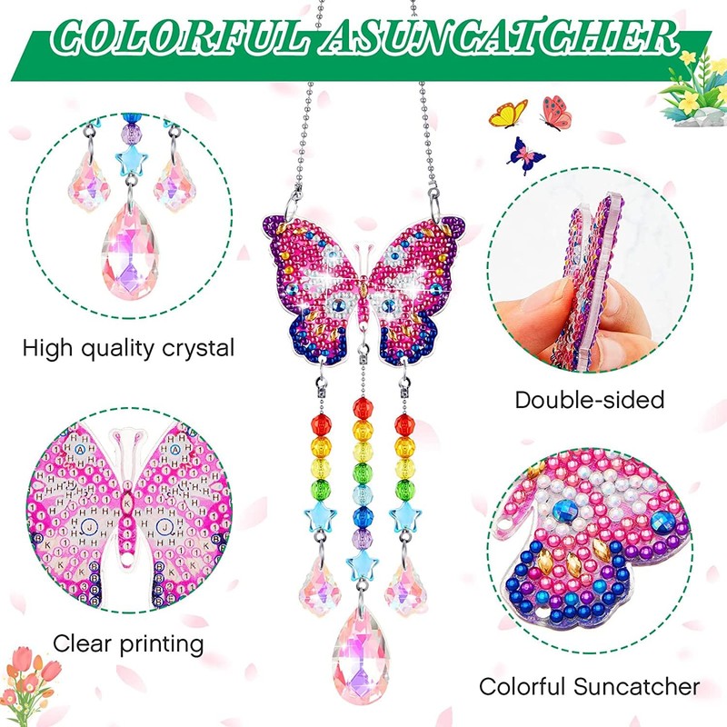 • 6 Pieces Craft Kit - Includes dragonflies, butterflies, birds and more. Colorful 6 pieces diamond painting kit that includes all the accessories, a combination of double sided diamond painting acrylic sheets and transparent beads, let girls love to create their own handmade works.