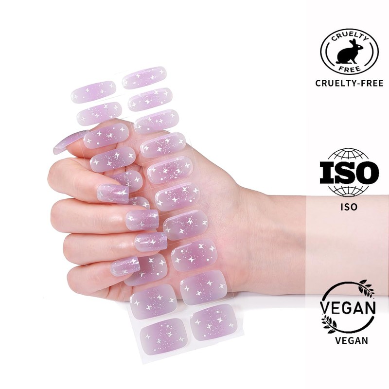 YiMistnnts Semi Cured Gel Nail Strips Works with Any Nail Lamps, Salon-Quality, Long Lasting, Easy to Apply & Remove - Includes 2 Prep Pads, Nail File & Wooden Stick (Purple Butterfly)