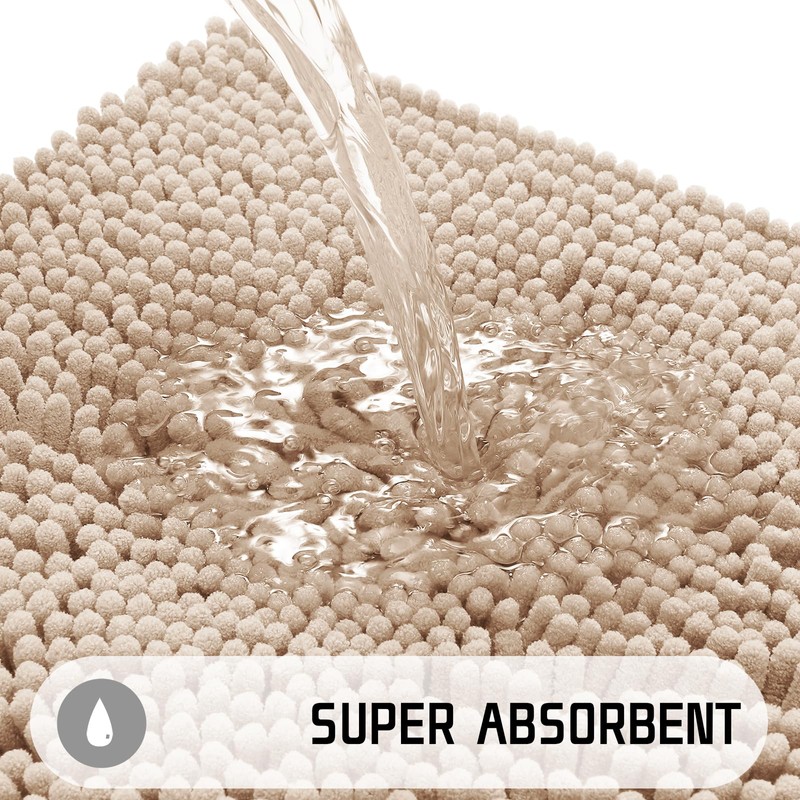 Yimobra Bathroom Rugs, 44'' x 24'', Extra Soft Chenille Bath Rugs, Non-Slip, Water Absorbent, Thick Floor Mat with Machine Washable, Plush Microfiber Shaggy Rugs for Shower Bathtubs, Light Brown