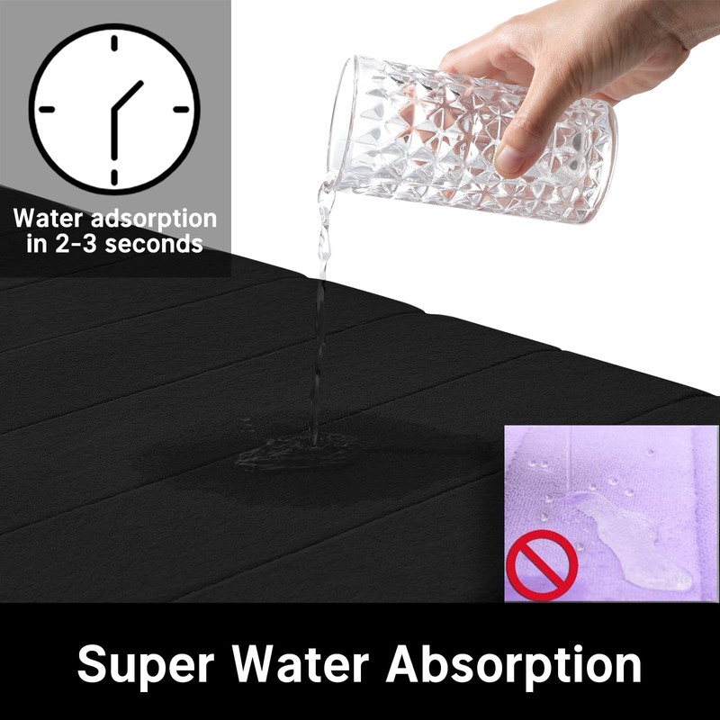 - Superior Water Absorption: Crafted with a soft velvet microfiber layer, these bath mats are designed to absorb water efficiently from your wet feet. Say goodbye to water pooling on the surface of your bath mat.