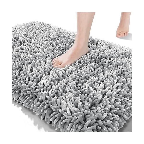 - Super Soft Fluffy: Yimobra chenille bathroom rug has a high and shiny pile that not only looks luxurious but feels like it too. Fluffy Bath rugs so cosy and snuggly, satisfactory thickness. Please looking forward to the surpriseLike stepping into the cloudwhen you get out of the bath or shower! Microfiber bath mat quickly absorbs water from your feet and shields toes from the cold hard floor