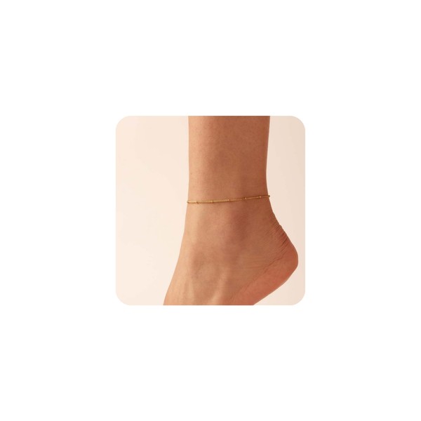 Yimofy Anklets for Women 18K Gold Plated Dainty Satellite Beaded Ankle Bracelets Minimalist Summer Beach Foot Chain Jewelry Gifts