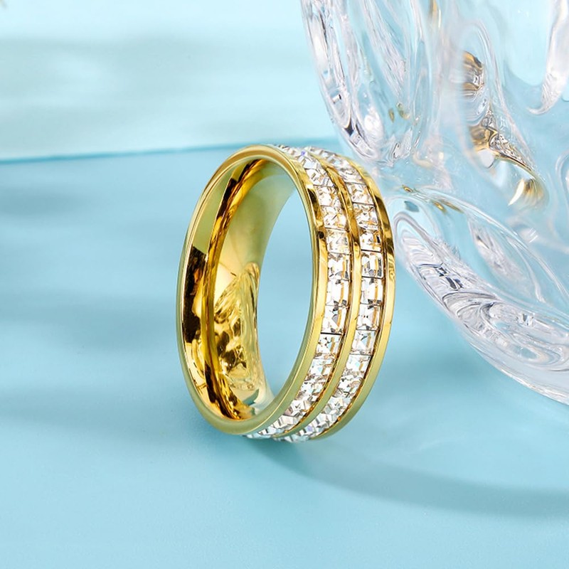 - 【High Quality Materials】: This cz band ring is made of 18K gold plated stainless steel and high quality cubic zirconia, which is durable, anti-allergic, nickel-free, no rust, corrosion and lasting color retention. Highly polished, bright color, smooth surface, comfortable to wear.