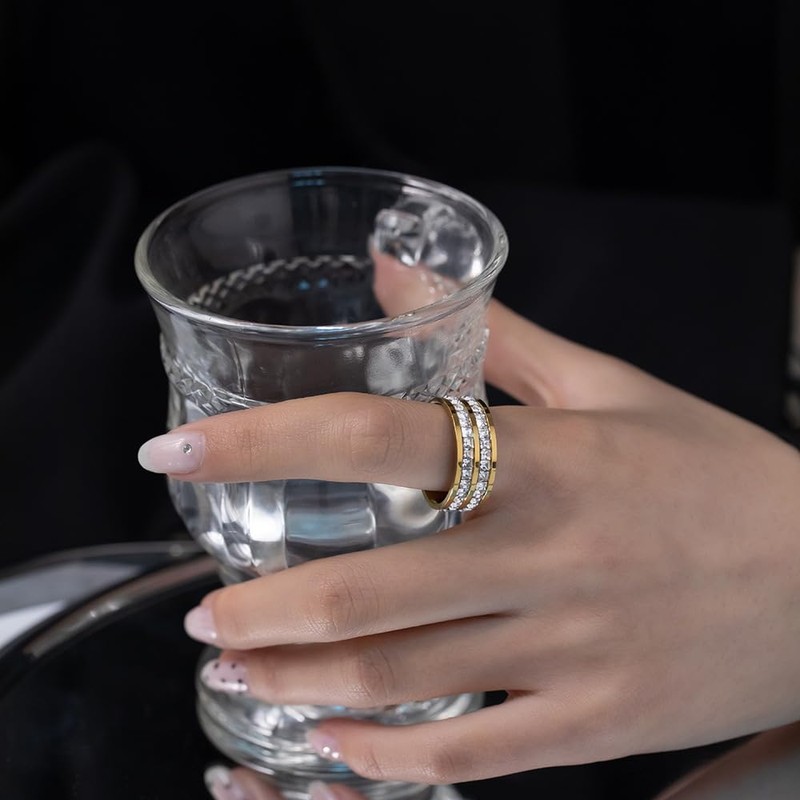 - 【Cubic Zirconia Band Ring】: A beautiful and timeless piece of jewelry that combines the durability of stainless steel with the sparkle of cubic zirconia.