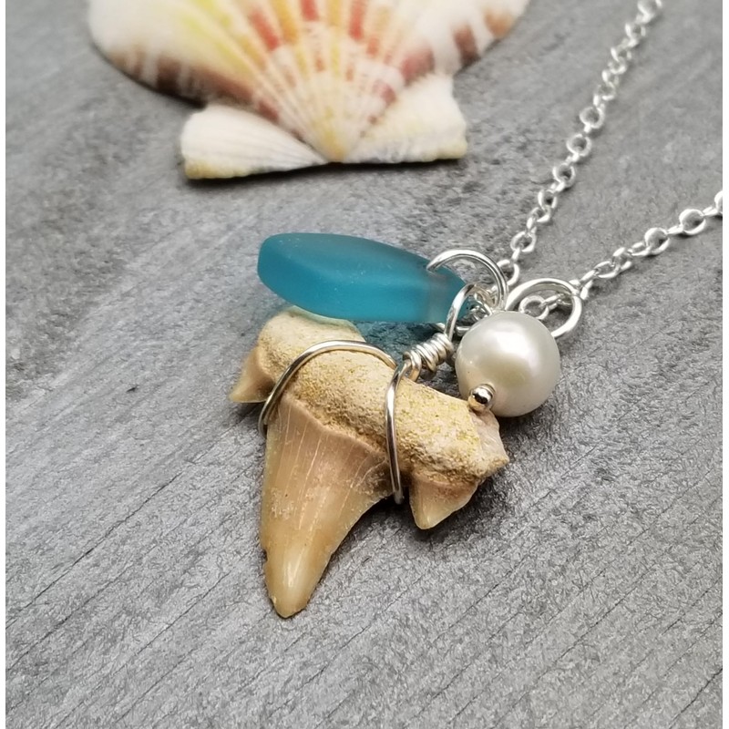 Yinahawaii Real Shark Tooth and Sea Glass Jewelry, Unique Gift and Conversation Piece, Natural Pearl, Hawiian Gift For Women and Girls