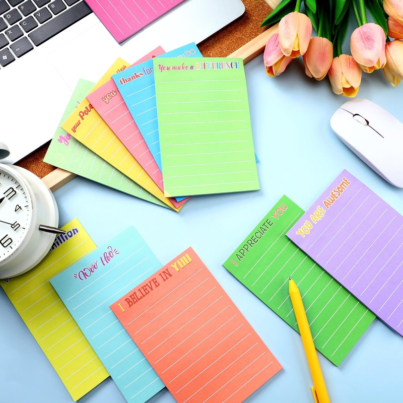 - Appreciation Theme Design: these lined motivational sticky notes are designed with optimistic phrases on colorful memo notepad such as [Thanks for all that you do], [You are awesome], [I appreciate you] and so on, this sticky notepad set can convey your appreciation to others directly, which make them happy when they use them