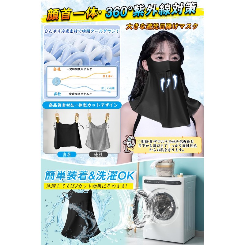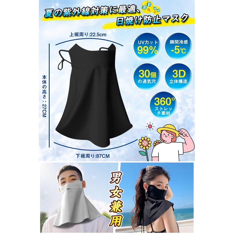 - (Firmly blocks ultraviolet rays. UV face cover that you will want to use every day: Whether you're going to work or shopping, or taking a child's reception, you will be concerned about UV rays. This face cover is built with UPF 50+ safety and can block over 99% of UV rays. Designed to cover your face and neck, so you can use the areas that tend to be accidentally sunburned. Perfect for those who are concerned about sunscreen alone. The simple design is neat and easy to match with clothes. This face cover will make you want to use it every day