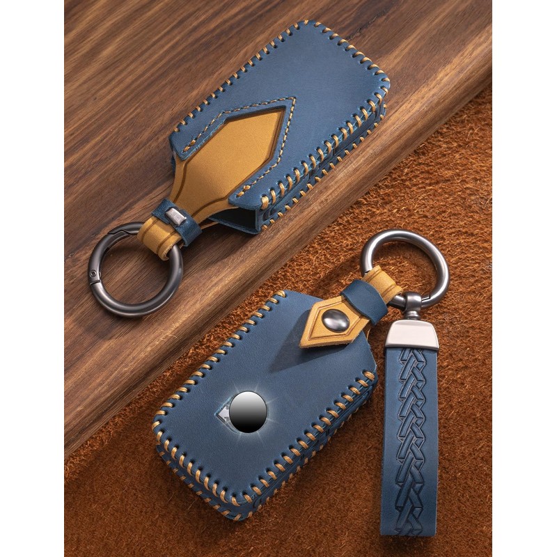 YINEOR Key Fob Cover Leather Car Key Case Keychain Fob Holder Compatible with Volvo XC40 XC60 XC90 S60 S90 V60 V90 T5 T6 (Blue)