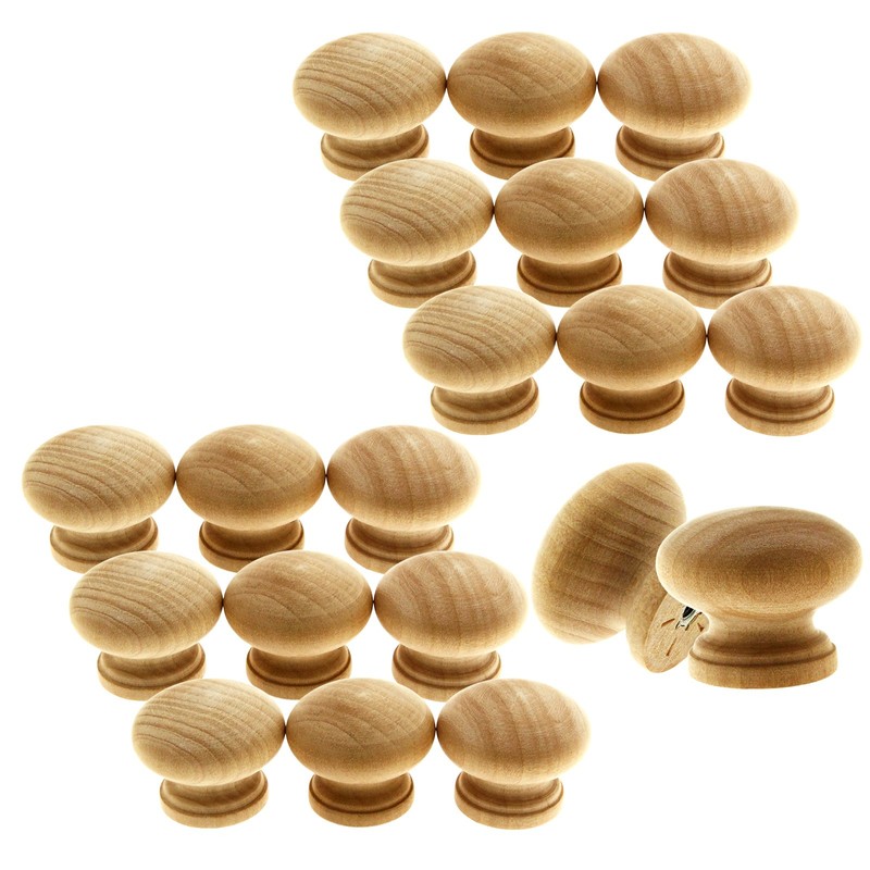 YINETTECH 20 Pcs 32mm Mushroom Shape Pre-Drilled Cupboard Drawer Wardrobe Door Pull Handle Natural Wood