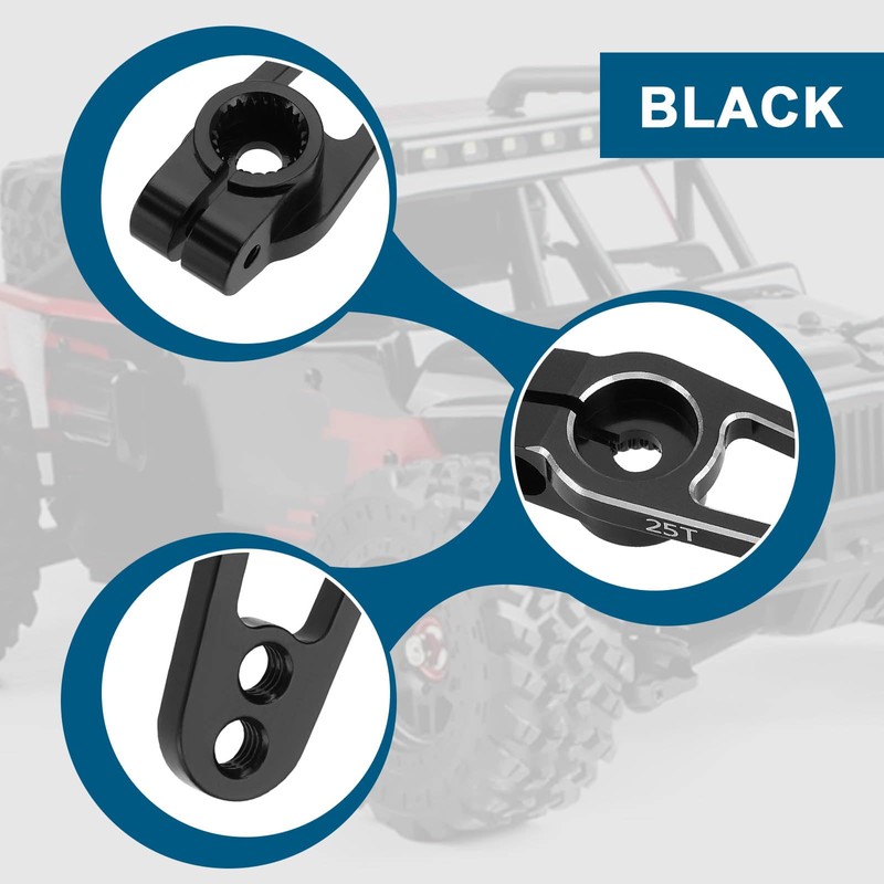 YINETTECH 4Pcs 25T Servo Horn Arm Aluminum Alloy Servo Arm Single Sided Steering Arm M3 Threads for 1/10 Scale RC Car Compatible with Futaba Servo Motors, Black