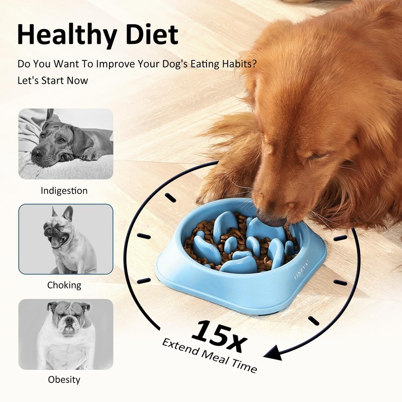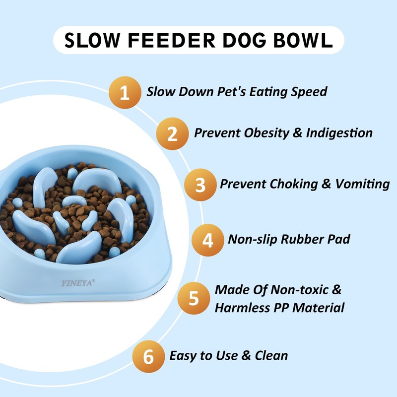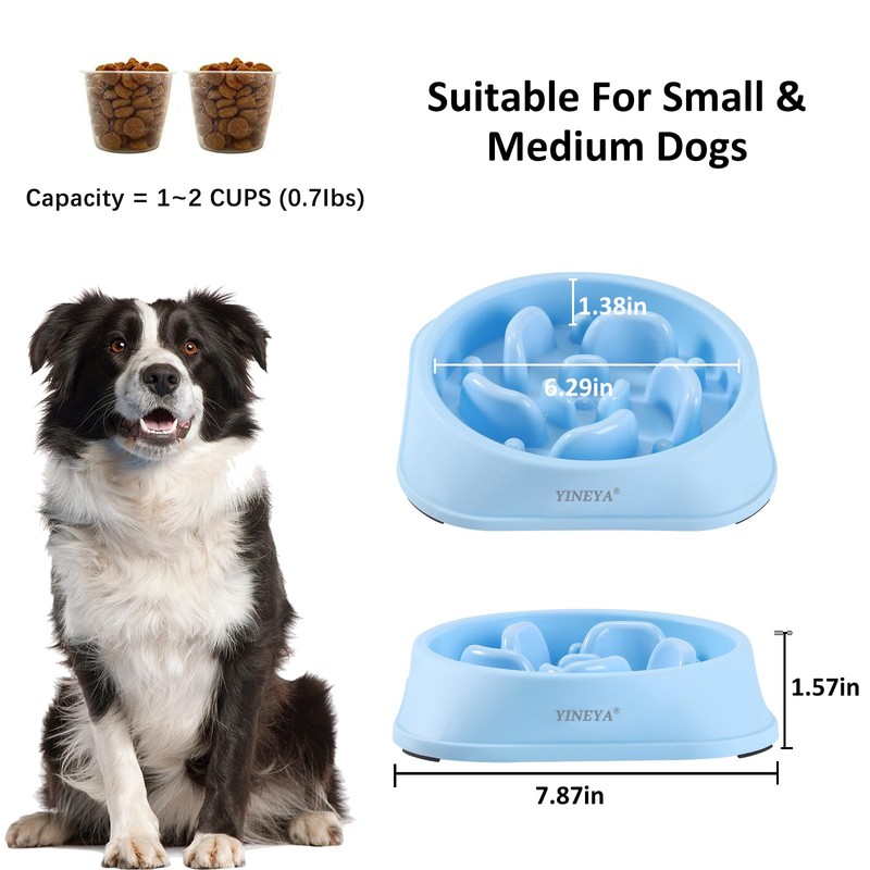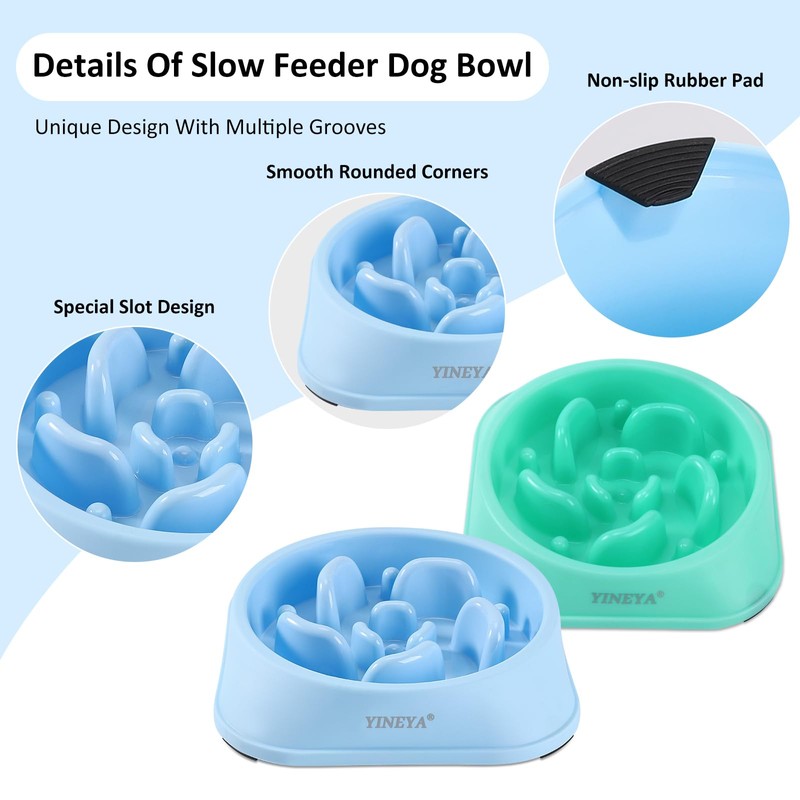 - Slow Down Dog'S Eating: Are you still worried that your dogs wolf their food down causing bloat, choking and other health issues? YINEYA large slow feeder dog bowls large breed can replace the regular dog bowls large sized dog to prevent the dog from eating too fast. With unique maze design, our small dog slow feeder bowl small breed and slow feeder cat bowl can allow dogs to chew food more slowly and reduce digestive problems, enhancing oral sensation and the process of enjoying food