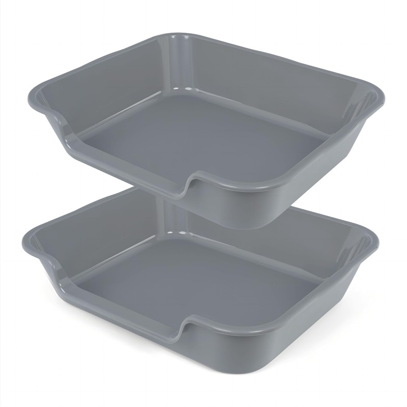 Ying Tutu 2 Pack of Extra Large Cat Litter Box (ABS Material), Low Entry Senior Litter Pen for Geriatric Kitty Big Cats, Jumbo Pet Safe Litter Boxes Tray for Indoor Pets Potty (Gray, 24" L x 20" W)