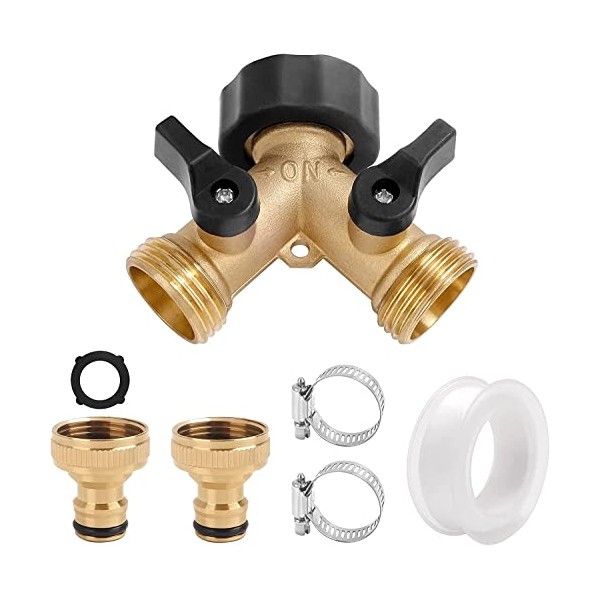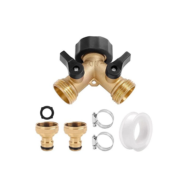 yingd Garden Hose Splitter, 2 Way Hose Pipe Splitter, 3/4'' Brass Tap Y Valve Splitter Hose Connector, Outdoor Hose Tap Connector, with Individual On/Off and Two Quick Connector, black