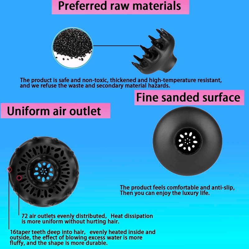 YingEnter Difusor Orquídea Negra, Secador de Pelo para Secadores con Boquilla de 1.7-2.6 pulgadas de Diámetro, adecuado para Pelo Rizado y Ondulado-Suavidad y Control