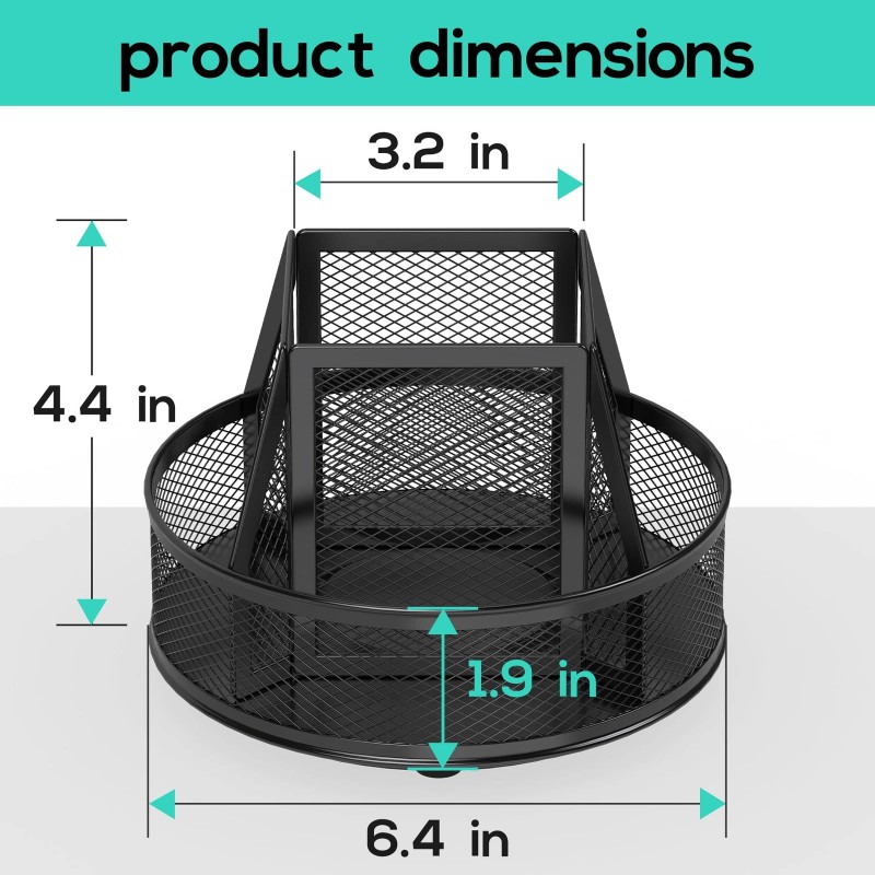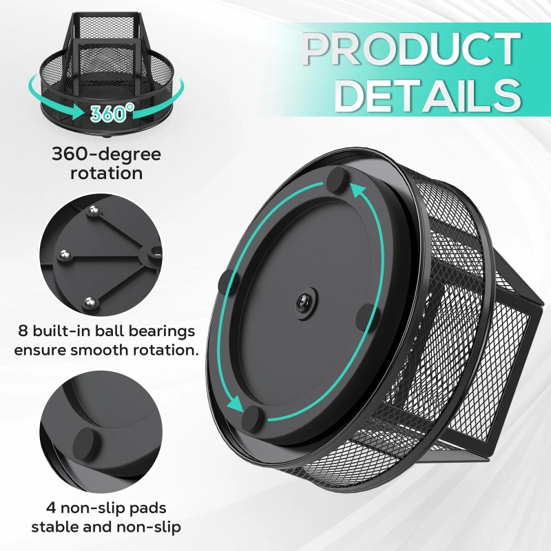 YINGHUA Metal Mesh Desk Organizer with 5 Compartments and Rotating Pencil Hol...