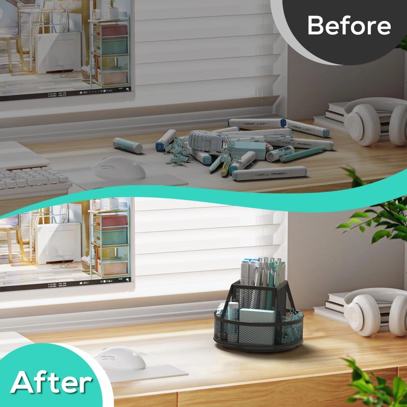 Durable Pencil Holder for Desk Use: Made from high-quality metal mesh, this desk organizer is built to last. The pencil holder (and pen holder) is sturdy and secure, ensuring your writing instruments stay organized and within reach