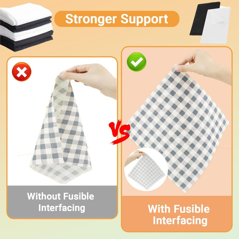 - 【Versatile Applications】: This lightweight interfacing for sewing iron on isn't just for one type of project—it's a multitasker! Use it for quilting to add stability to your batting, for sewing collars and cuffs to give them that perfect shape, or for appliqué and embroidery to keep your fabric steady. It's also great for making handbags, pockets, and waistbands. With our interfacing, you can tackle a variety of sewing tasks with confidence.