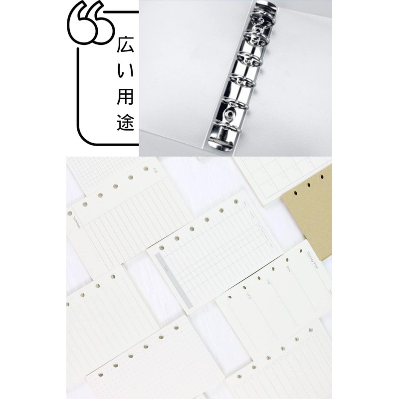 【3冊セット枚数】ミニ6穴システム手帳バインダー×1個+6穴A7手帳リフィル3冊×45枚 合わせて135枚;