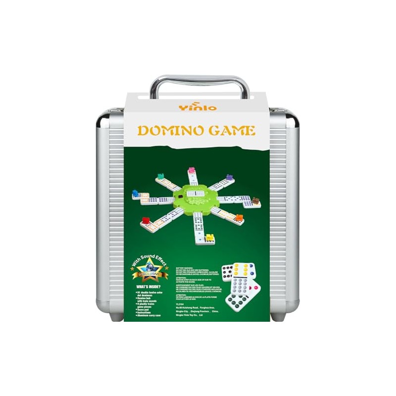 Mexican train dominoes is an exciting game that the entire family can enjoy. This set of professional sized dominoes have various bright colored dots, easy to distinguish while playing. The portable aluminum case is convenient to carry around and easy to pack and store.