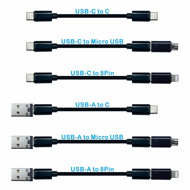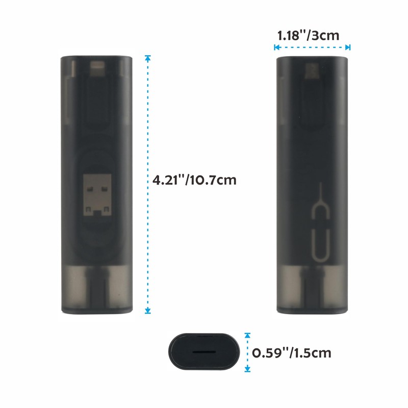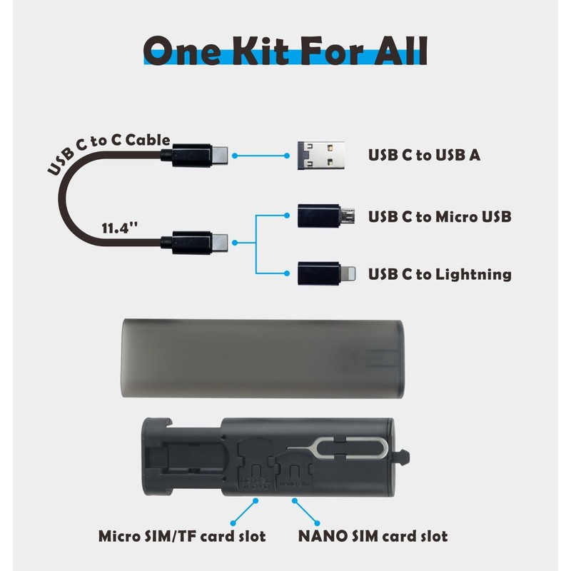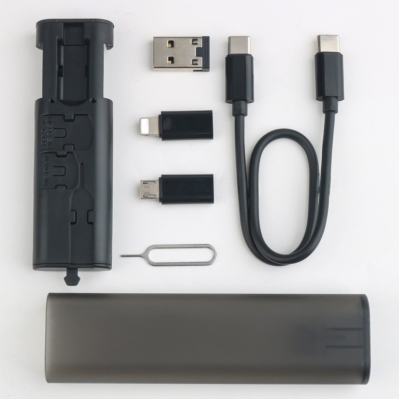 • Three adapters, USB C female to USB A/ Micro USB/ 8pin male converters