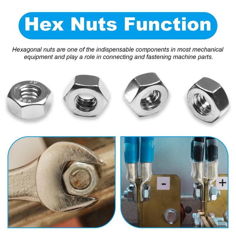 - Easy Use - Hex nuts are versatile and can be used in a variety of applications. Hexagonal nuts have a relatively strong tightening force and are easy to install and use with the right parts and the right spanner
