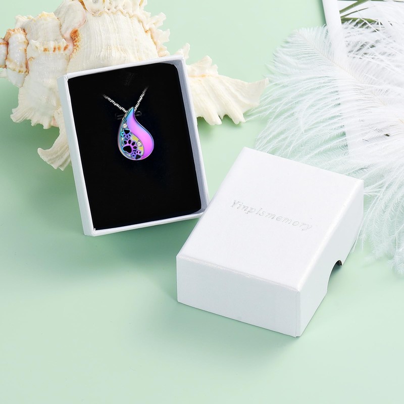 Yinplsmemory Pet Paw Print Teardrop Urn Necklace for Ashes for Dog/Cat Ashes Keepsake Cremation Pendant Memorial Jewelry for Women/Men