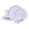 - White dinnerware set is simple and easy to stack for a tidy kitchen and dining room.