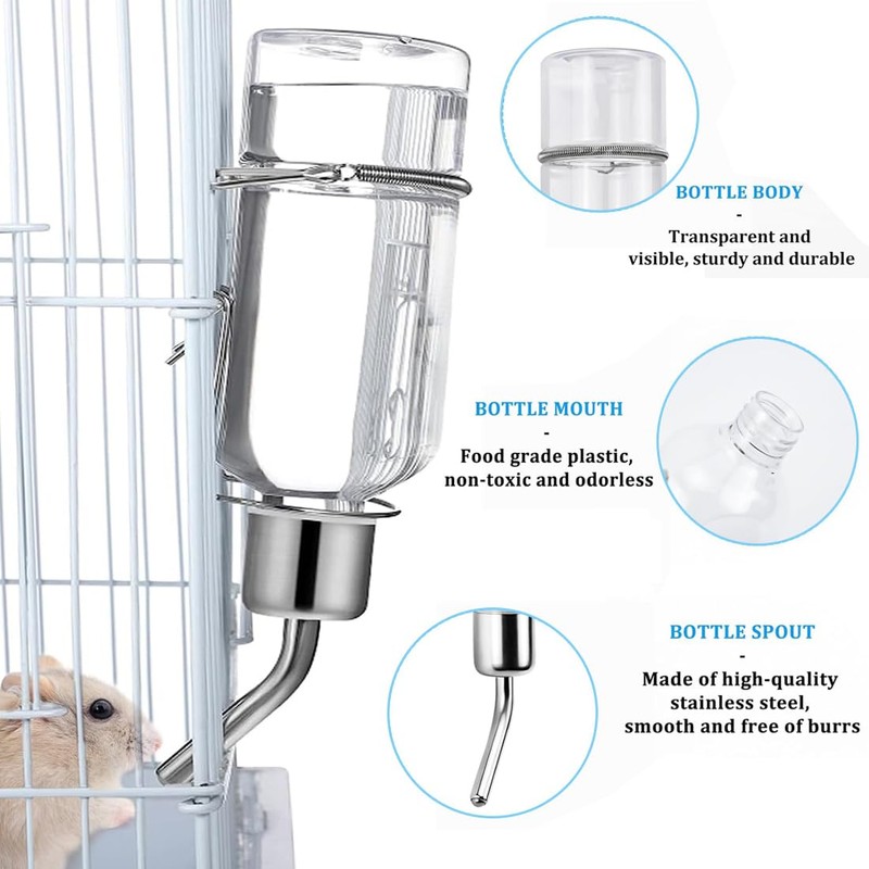 - Space-saving: the hanging design does not take up space on the floor. The rabbit water bottle can be easily hung on the pet's cage. The height can be adjusted according to the size and needs of the animal, easy to use and practical