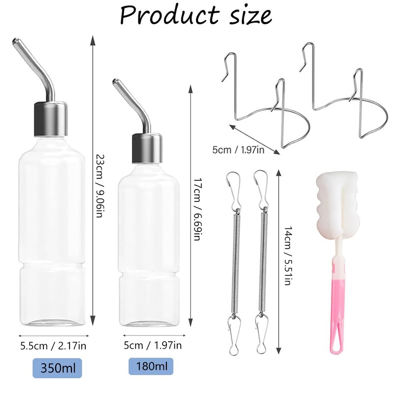 YINZZTRY Hanging Pet Water Bottles, Pack of 2 Drinking Bottle Rabbit with Holder, Rabbit Water Bottles, with 1 Brush, for Rabbits, Guinea Pigs, 180 ml + 350 ml