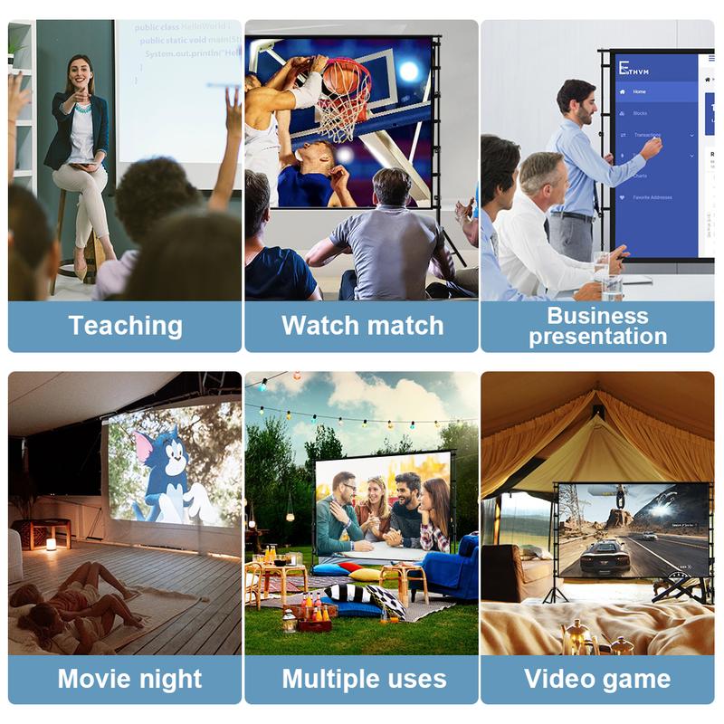【Excellent Projection Display】This 150-inch cinema projection screen with stand, aspect ratio 16:9, 160-degree wide viewing angle. This portable projector screen will be your projector and your good friend. Cinema projection screens are designed to provide clear, high-resolution images, rich colors, and a great viewing experience in different viewing positions.