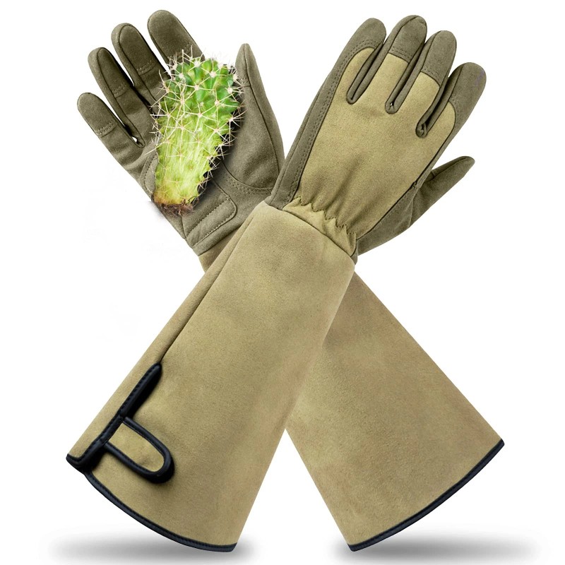 【Durable& Convenient】- Durable synthetic leather fabric offer puncture proof protection. Elastic around wrist to keep rose pruning gloves stay, no slip off. Easy on and off. Extended long cuff keeps dirt & mud out.