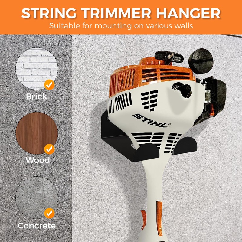 - Multi-purpose: Not only suitable for common gardening tools (such as lawn mowers, chainsaws, shovels, etc.), but also can be used to hang other items, such as bicycles, garden hoses, mops, brooms and other household necessities.The product is compatible with Stihl weed eater and other brands of small weed eater. (Some large weed eater are not well compatible, depending on the size.)
