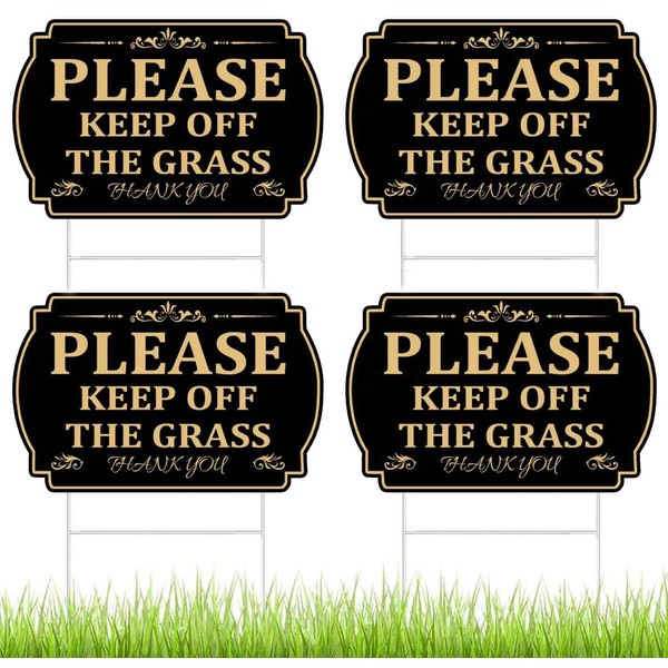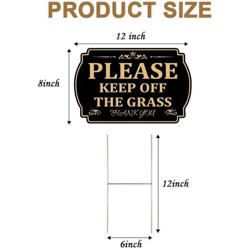 - Appropriate Size:The size is approximately 12 x 8 inches. You will receive 4 stay off grass signs. A sufficient quantity can meet your usage and replacement needs. The black and gold design can also be more eye-catching.