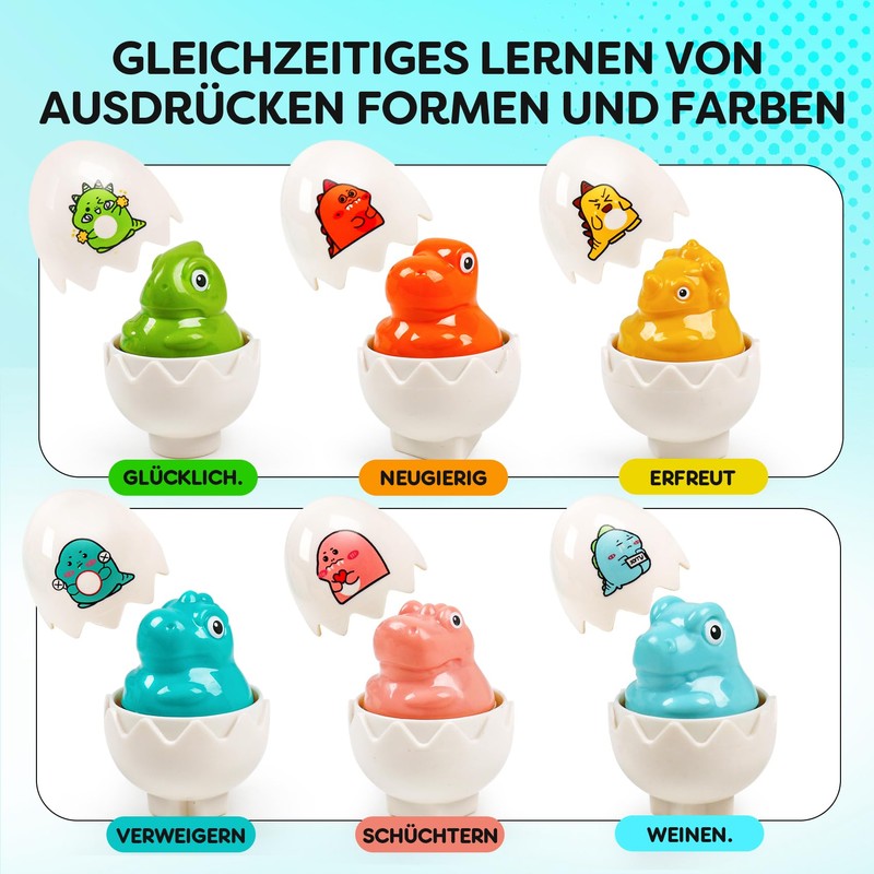 - Fun with learning effect: discover a fun and educational toy for children with our egg shape toy. Each egg is designed in different colours and with fun dinosaur faces.